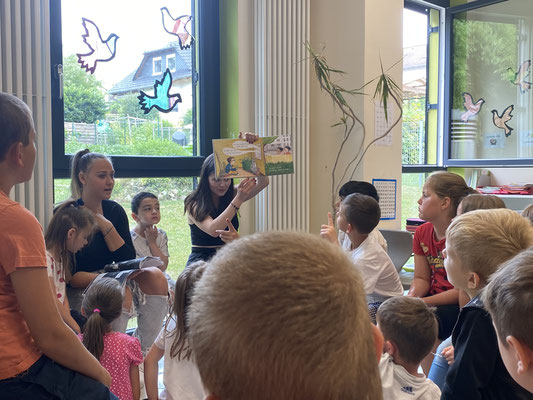Am letzten Freitag haben sich die Kinder aus der Bärenklasse mit Frau Meister von AGIL des Landkreises Kassel nach dem „kleinem Wir“ auf die Suche gemacht. Es war gar nicht so leicht für die Kinder, das Wir am Anfang zu beschreiben oder es sogar in sich oder in unserer Klasse zu entdecken. Das Hören der Geschichte von dem „kleinen Wir“ hat den Kindern dabei geholfen, es zu verstehen und es in sich zu suchen. Sogar unsere Ewa aus der Ukraine wurde sprachlich bei dem Projekttag in die Klassengemeinschaft eingebunden, denn sie hatte das Buch in der Muttersprache lesen dürfen. Die Kinder haben aus der Geschichte gelernt, das Wir wächst, wenn wir alle mitmachen, wenn wir uns gegenseitig helfen und freundlich zueinander sind. Und wenn es mal Streit gibt, können wir diesen auch schlichten.