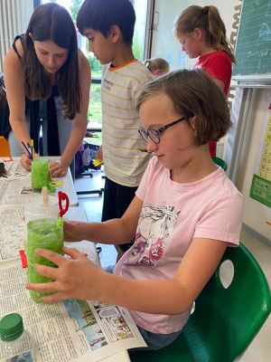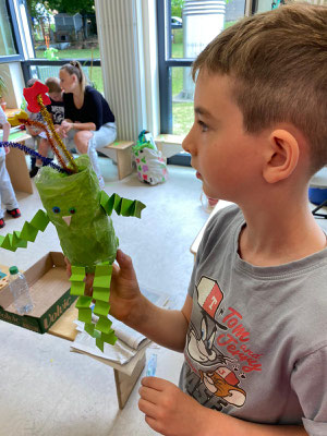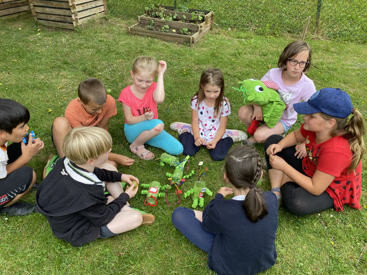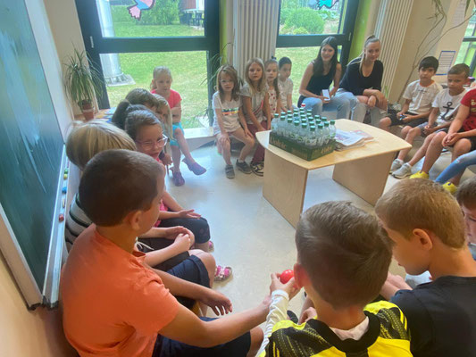 Beim gemeinsamen Spiel „Wo ist das kleine Wir?“ haben die Kinder das Wir gefunden. Indem wir als Klasse zusammengerückt sind und alle Kinder das Wir vor dem Sucher beschützt haben. Wir haben es miteinander geteilt, indem wir es getragen und weiter gereicht haben. Die meiste Freude kam jedoch beim Basteln auf, denn alle Wir´s sind unterschiedlich geworden, so wie jedes Kind in unserer Klasse. Die Kinder fanden das Projekt toll, es war für uns alle ein gelungener Tag. Denn das wir, obwohl es noch ganz klein ist, ist bereits da gewesen.